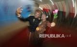 REPUBLIKA.CO.ID, KEDIRI -- Warga lanjut usia (lansia) mengikuti lomba peragaan busana di Balai Kota Kediri, Jawa Timur, Rabu (17/11/2021). Kegiatan yang diselenggarakan pemerintah daerah tersebut sebagai upaya sosialisasi hidup sehat sekaligus meningkatkan kepesertaan posyandu lansia.