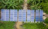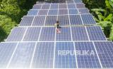REPUBLIKA.CO.ID, MUARA ENIM -- Petugas membersihkan panel surya yang berada di Pembangkit Listrik Tenaga Surya (PLTS) Irigasi Tanjung Raja yang dibangun melalui dana CSR PT Bukit Asam Tbk di Desa Tanjung Raja, Kecamatan Muara Enim, Kabupaten Muara Enim, Sumatera Selatan, Kamis (18/11/2021).