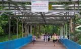 Sejumlah bermain di bawah panel surya yang berada di Pembangkit Listrik Tenaga Surya (PLTS) Irigasi Tanjung Raja yang dibangun melalui dana CSR PT Bukit Asam Tbk di Desa Tanjung Raja, Kecamatan Muara Enim, Kabupaten Muara Enim, Sumatera Selatan, Kamis (18/11/2021). PLTS yang memiliki kapasitas sebesar 16 kilowatt tersebut dipergunakan untuk menghidupkan pompa air yang menyalurkan air dari Sungai Enim ke lahan persawahan milik warga yang berjarak sekitar satu kilometer dengan ketinggian sekitar 30 meter. (FOTO : Antara/Nova Wahyudi)