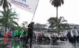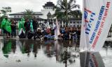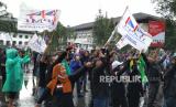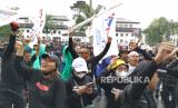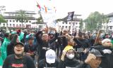 REPUBLIKA.CO.ID, BANDUNG -- Buruh dari sejumlah organisasi buruh kembali menggelar aksi di depan Gedung Sate, Jalan Diponegoro, Kota Bandung, Jumat (19/11). Aksi itu menyampaikan berbagai persoalan buruh yang ada serta menuntut upah layak dan menolak Omnibus Law Cipta Kerja.