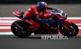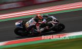 Pembalap tim Aruba. it Racing - Ducati WorldSBK Michael Ruben Rinaldi melaju saat sesi latihan bebas pertama (FP1) di Pertamina Mandalika International Street Circuit, Lombok Tengah, Nusa Tenggara Barat (NTB), Jumat (19/11/2021). (FOTO : Antara/Sigid Kurniawan)