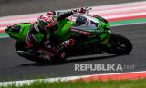 Pembalap tim KAWASAKI Racing WorldSBK Jonathan Rea melaju saat sesi latihan bebas pertama (FP1) di Pertamina Mandalika International Street Circuit, Lombok Tengah, Nusa Tenggara Barat (NTB), Jumat (19/11/2021). (FOTO : Antara/Sigid Kurniawan)