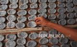 Pekerja menjemur kerupuk yang baru selesai dicetak di Sentra Home Industri dan UKM di Pekarungan, Serang, Banten, Jumat (19/11/2021). Data Kemenkop dan UKM menyebutkan penyaluran Kredit Usaha Rakyat (KUR) 2021 hingga November 2021 telah mencapai Rp237 triliun atau 83,2 persen dari total plafon Rp285 triliun dan diharapkan pada Desember 2021 bisa tersalurkan 100 persen sehingga bisa lebih maksimal lagi membangkitkan usaha rakyat yang terdampak pandemi. (FOTO : Antara/Asep Fathulrahman)