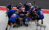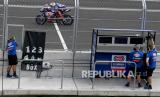 Mekanik tim Pata Yamaha With Brixx WorldSBK mengecek sepeda motor pembalapnya Andrea Locatelli saat sesi latihan bebas kedua (FP2) WSBK di Pertamina Mandalika International Street Circuit, Lombok Tengah, Nusa Tenggara Barat, Jumat (19/11/2021). (FOTO : ANTARA/Andika Wahyu)