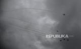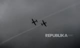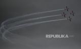 REPUBLIKA.CO.ID, LOMBOK -- Pesawat Jupiter Aerobatic Team TNI AU melakukan atraksi di kawasan Pertamina Mandalika International Street Circuit, Lombok Tengah, Nusa Tenggara Barat, Ahad (21/11). Atraksi tersebut dilakukan untuk memberikan hiburan bagi penonton disela perhelatan WSBK.