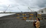 Warga menonton proyek pembangunan pengaman Sungai Bogowonto di Kulonprogo, Yogyakarta, Senin (22/11). Proyek yang menelan biaya Rp 764 miliar ini difungsikan sebagai penangkal banjir Bandara Internasional Yogyakarta. Proyek ini ditargetkan selesai pada 2023 mendatang. (FOTO : Wihdan Hidayat / Republika)