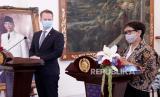 REPUBLIKA.CO.ID,JAKARTA -- Menlu Retno LP Marsudi bersama Menlu Denmark Jeppe Kofod memberikan keterangan pers seusai melakukan pertemuan bilateral di Gedung Kemenlu Jakarta, Senin (22/11/2021).