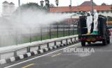 REPUBLIKA.CO.ID, YOGYAKARTA -- Petugas Brimob Polda DIY menyemprot disinfektan di Yogyakarta, Selasa (23/11). Untuk pencegahan penyebaran Covid-19, penyemprotan disinfektan kembali dilakukan oleh Brimob Polda DIY. Penyemprotan disinfektan dilakukan bergantian terutama di tempat yang menjadi tempat kunjungan wisatawan.