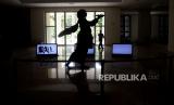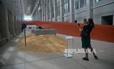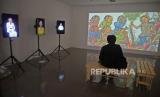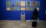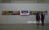 Pengunjung melihat karya seni yang dipamerkan dalam Jakarta Biennale 2021 di Museum Nasional, Jakarta, Selasa (23/11). Jakarta Biennale 2021 itu mengangkat tema Esok dan menampilkan karya-karya puluhan seniman yang merefleksikan sejumlah isu, seperti pandemi, perubahan iklim, jender, dan hak asasi manusia dan berlangsung mulai 21 November 2021 hingga 21 Januari 2022. Pameran Jakarta Biennale berlangsung di Museum Nasional, Museum Kebangkitan Nasional (STOVIA), serta sejumlah ruang-ruang publik di Jakarta, termasuk di halaman Taman Ismail Marzuki, Cikini. Prayogi/Republika (FOTO : Prayogi/Republika.)
