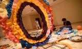 Pengunjung melihat karya seni yang dipamerkan dalam Jakarta Biennale 2021 saat pembukaan di Museum Nasional, Jakarta, Sabtu (20/11/2021). Jakarta Biennale 2021 itu mengangkat tema Esok dan menampilkan karya-karya seniman dari 20 negara serta berlangsung mulai 21 November 2021 hingga 21 Januari 2022. (FOTO : ANTARA/Aprillio Akbar)