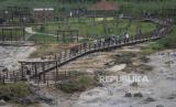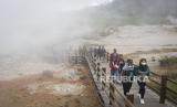 Sejumnlah wisatawan mengunjungi Kawah Sikidang di Dataran Tinggi Dieng, Batur, Kabupaten Banjarnegara, Jawa Tengah, Selasa (23/11/2021). Sektor pariwisata di Dieng kembali menggeliat usai obyek wisata kembali dibuka sekitar dua pekan terakhir setelah adanya relaksasi dalam PPKM level 3 di Banjarnegara. (FOTO : ANTARA/Aditya Pradana Putra)