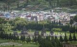 Suasana kompleks Candi Arjuna tampak dari ketinggian di Dataran Tinggi Dieng, Batur, Kabupaten Banjarnegara, Jawa Tengah, Selasa (23/11/2021). Sektor pariwisata di Dieng kembali menggeliat usai obyek wisata kembali dibuka sekitar dua pekan terakhir setelah adanya relaksasi dalam PPKM level 3 di Banjarnegara. (FOTO : ANTARA/Aditya Pradana Putra)