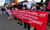 REPUBLIKA.CO.ID, YOGYAKARTA -- Korban aksi kekerasan Lapas Narkotika Kelas II A Pakem menggelar aksi diam di depan Kantor Wilayah Kemenkumham Yogyakarta, Rabu (24/11). Aksi yang diikuti oleh 60 orang dari korban dan saksi ini menuntut menghentikan kekerasan berupa penyiksaan di Lapas khususnya Lapas Narkotika Pakem. Mereka juga mendesak Ombudsman RI dan Komnas HAM mengeluarkan rekomendasi atas penyelidikan penyiksaan di Lapas Pakem kepada Kemenkumham.
