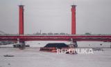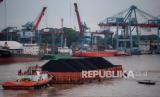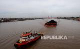 REPUBLIKA.CO.ID, Sebuah kapal tongkang pengangkut batu bara melintas di Sungai Musi, Palembang, Sumatera Selatan, Rabu (24/11/2021). Pemerintah Kota Palembang berencana memungut retribusi sebesar Rp4 ribu per ton kepada angkutan batu bara yang melintas di Sungai Musi yang akan diterapkan mulai tahun 2022 mendatang.
