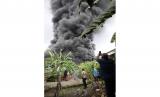 Asap membubung ke langit dari lokasi terbakarnya pabrik palet plastik di kawasan Desa Randegan, Tanggulangin, Sidoarjo, Jawa Timur, Rabu (24/11/2021). Sebanyak delapan unit mobil Pemadam Kebakaran (PMK) dikerahkan ke lokasi tersebut dan belum diketahui penyebabnya. (FOTO : Antara/Umarul Faruq)
