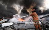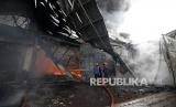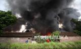 REPUBLIKA.CO.ID,SIDOARJO -- Petugas pemadam kebakaran berusaha memadamkan api yang membakar pabrik palet plastik di kawasan Desa Randegan, Tanggulangin, Sidoarjo, Jawa Timur, Rabu (24/11/2021).