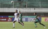 Pesepak bola Persebaya Surabaya Marselino (kiri) berebut bola dengan pesepak bola Persita Tangerang Taufiq (kanan) saat pertandingan Liga 1 di Stadion Maguwoharjo, Sleman, DI Yogyakarta, Rabu (24/11/2021). Persebaya Surabaya berhasil mengalahkan Persita Tangerang dengan skor 4-0. (FOTO : ANTARA/Ananda Erlangga)