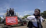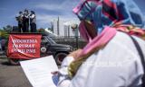 Sejumlah guru dari berbagai forum guru melakukan aksi Indonesia Darurat Guru PNS di kawasan Monumen Perjuangan Rakyat Jawa Barat (Monpera), Kota Bandung, Kamis (25/11). Dalam aksi yang bertepatan dengan peringatan Hari Guru Nasional 2021 tersebut menuntut agar guru yang masih berstatus honorer bisa diangkat menjadi PNS atau Pegawai Pemerintah dengan Perjanjian Kerja (PPPK). Hal tersebut dikarenakan Indonesia masih kekurangan 1,3 juta guru di sekolah negeri. (FOTO : REPUBLIKA/ABDAN SYAKURA)