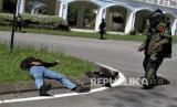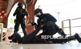 REPUBLIKA.CO.ID, KENDARI -- Personel Brimob Polda Sultra mengamankan seorang teroris saat simulasi antiteror di komplek perumahan Citra Land di Kendari, Kendari, Sulawesi Tenggara, Kamis (25/11/2021). Simulasi tersebut bertujuan untuk mengasah kemampuan anggota Brimob dalam menjaga NKRI terutama menghadapi serangan teroris.