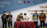 REPUBLIKA.CO.ID, JAKARTA -- Kamar Dagang dan Industri (Kadin) Indonesia dan KPK menandatangani nota kesepahaman kerjasama kedua belah pihak di gedung KPK, Jakarta, Kamis (25/11/2021).
