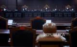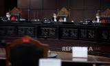 REPUBLIKA.CO.ID, JAKARTA -- Ketua Majelis Hakim Mahkamah Konstitusi (MK) Anwar Usman memimpin sidang putusan uji Formil dan Materiil Undang-Undang Nomor 11 Tahun 2020 tentang Cipta Kerja terhadap UUD 1945, di gedung Mahkamah Konstitusi (MK), Jakarta,Kamis (25/11).