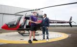 REPUBLIKA.CO.ID, JAKARTA -- General Manager TREVO Brandon Curson memperlihatkan aplikasi TREVO kepada Director of Marketing and Business Development Whitesky Ari Nurwanda seusai penandatanganan kerja sama di Cengkareng Heliport, Tangerang, Banten, Rabu (24/11/2021). Bekerja sama dengan operator helikopter Whitesky Aviation, TREVO kini menjadi satu-satunya aplikasi transportasi yang menyediakan opsi sewa helikopter di Ibu kota Jakarta.