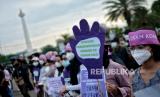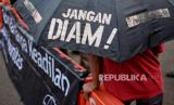 Aktivis melakukan aksi kamisan di depan Istana Merdeka, Jakarta, Kamis (25/11). Aksi Kamisan ke 706 kembali digelar secara offline setelah melakukan aksi secara online selama pandemi Covid-19. Dalam aksinya mereka menuntut komitemen Presiden Republik Indonesia dalam menuntaskan kasus Hak Asasi Manusia (HAM) untuk memberikan keadilan bagi keluarga korban juga mendukung Peraturan Menteri Pendidikan, Kebudayaan, Riset, dan Teknologi (Permendikbud Ristek) Nomor 30 Tahun 2021 tentang Pencegahan dan Penanganan Kekerasan Seksual (PPKS) di Perguruan Tinggi. Republika/Thoudy Badai (FOTO : Republika/Thoudy Badai)