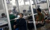 Sejumlah penumpang kereta api menunggu hasil swab antigen di Stasiun Gambir, Jakarta, Kamis (25/11). Pemerintah telah resmi menerbitkan aturan Pemberlakuan Pembatasan Kegiatan Masyarakat (PPKM) Level 3 saat Natal dan tahun baru mendatang. Dalam aturan tersebut Aparatur Sipil Negara (ASN), pegawai Badan Usaha Milik Negara (BUMN), karyawan swasta serta personel Tentara Nasional Indonesia (TNI) dan Polri dilarang mengambil cuti pada periode 24 Desember hingga 2 Januari 2022.Prayogi/Republika. (FOTO : Prayogi/Republika.)