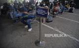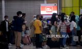 REPUBLIKA.CO.ID,JAKARTA -- Sejumlah penumpang kereta api mengantri untuk melakukan swab antigen di Stasiun Gambir, Jakarta, Kamis (25/11).