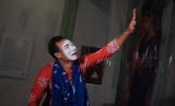 Seniman pantomim Sutejo menampilkan pertunjukan berjudul Nyah (perempuan) Lasem pada rangkaian Pameran Foto Tridaya di rumah Nyah Lasem, Rembang, Jawa Tengah, Kamis (25/11/2021). Pameran fotografi Tridaya yang diselenggarakan di tiga lokasi berbeda kawasan Pecinan Kecil Lasem tersebut akan berlangsung hingga 5 Desember 2021 mendatang. (FOTO : ANTARA/Mohammad Ayudha)