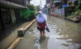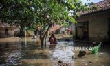 REPUBLIKA.CO.ID, BANDUNG -- Seorang pelajar melintasi genangan air saat banjir menggenangi Kampung Bojongasih, Kecamatan Dayeuhkolot, Kabupaten Bandung, Jumat (26/11). Banjir akibat intensitas curah hujan yang tinggi dan meluapnya Sungai Citarum pada Kamis (25/11) tersebut menyebabkan dua kecamatan yakni Kecamatan Dayeuhkolot dan Baleendah terendam banjir setinggi 30 sentimeter hingga 100 sentimeter.