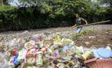 Warga mengambil sampah plastik di Sungai Citepus yang bermuara ke Sungai Citarum di Kampung Bojong Citepus, Kecamatan Dayeuhkolot, Kabupaten Bandung, Jumat (26/11). Warga di kawasan tersebut berharap kepada dinas terkait untuk segera melakukan penanganan atau pengerukan sampah di area tersebut guna mencegah banjir dan mengantisipasi munculnya berbagai macam penyakit. Foto: Republika/Abdan Syakura (FOTO : REPUBLIKA/ABDAN SYAKURA)