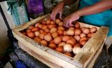 REPUBLIKA.CO.ID, YOGYAKARTA -- Pedagang menata telur ayam negeri di kios telur Lempuyangan, Yogyakarta, Jumat (26/11). Harga telur ayam negeri fluktuatif dalam dua bulan terakhir. Setiap kilogram harga telur bergerak di kisaran Rp 18 ribu hingga Rp 22 ribu. Menurut pedagang harga akan kembali naik jelang akhir tahun nanti.