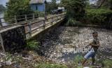 Warga mengambil sampah plastik di Sungai Citepus yang bermuara ke Sungai Citarum di Kampung Bojong Citepus, Kecamatan Dayeuhkolot, Kabupaten Bandung, Jumat (26/11). Warga di kawasan tersebut berharap kepada dinas terkait untuk segera melakukan penanganan atau pengerukan sampah di area tersebut guna mencegah banjir dan mengantisipasi munculnya berbagai macam penyakit. Foto: Republika/Abdan Syakura (FOTO : REPUBLIKA/ABDAN SYAKURA)