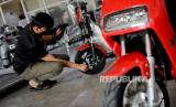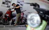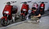 Teknisi mengecek kendaraan listrik di salah satu dealer sepeda motor listrik di Jakarta, Jumat (26/11). Kendaraan listrik saat ini mangalami tren positif. Menurut salah satu marketing dealer uwinfly, penjualan sepeda motor listrik pada bulan Oktober lalu mencapai 2.500 unit untuk wilayah Jabodetabek seiring dengan Peraturan Presiden No. 55/2019 tentang Percepatan Program Kendaraan Bermotor Listrik Berbasis Baterai untuk Transportasi Jalan sebagai upaya menekan emisi karbon di Indonesia. (FOTO : Republika/Thoudy Badai)