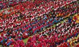 REPUBLIKA.CO.ID,SURABAYA -- Sejumlah kader kesehatan mengikuti Apel Kader Kesehatan di Gelora 10 November, Surabaya, Jawa Timur, Ahad (28/11/2021).