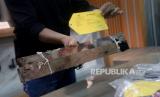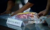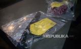 Barang bukti diperlihatkan saat rilis pembunuhan driver ojek online disertai dengan mutlasi di Mapolda Metro Jaya, Ahad (28/11). Polda Metro Jaya menetapkan tiga orang sebagai tersangka yang salah satunya masih DPO dalam kasus tersebut serta mangamankan barang bukti berupa golok, kayu balok, mobil, HP dan pakaian korban.Prayogi/Republika. (FOTO : Prayogi/Republika.)