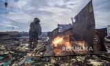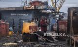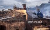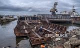 REPUBLIKA.CO.ID,JAKARTA -- Pekerja lepas memotong besi kapal di Cilincing, Jakarta, Ahad (28/11/2021).