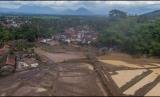 REPUBLIKA.CO.ID,GARUT -- Foto udara lahan pertanian yang diterjang banjir bandang di Kampung Cilowa, Kecamatan Sukawening, Kabupaten Garut, Jawa Barat, Ahad (28/11/2021).