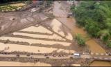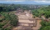 Foto udara lahan pertanian yang diterjang banjir bandang di Kampung Cilowa, Kecamatan Sukawening, Kabupaten Garut, Jawa Barat, Ahad (28/11/2021). Berdasarkan data sementara dari Badan Penanggulangan Bencana Daerah (BPBD) Kabupaten?Garut?terdapat 380 KK dari sembilan desa di Kecamatan Sukawening dan Karangtengah terdampak banjir bandang dan longsor. (FOTO : Antara/Adeng Bustomi)