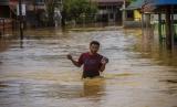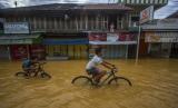 REPUBLIKA.CO.ID,HULU SUNGAI TENGAH -- Warga menaiki sepeda melintasi banjir di Barabai, Kabupaten Hulu Sungai Tengah, Kalimantan Selatan, Senin (29/11/2021).