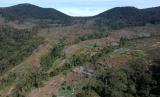 Foto udara kawasan ladang ilegal di dalam kawasan Taman Nasional Kerinci Seblat (TNKS), kaki Gunung Kerinci, Jambi, Senin (29/11/2021). Penebangan kayu dan pembukaan lahan ilegal dalam kawasan lindung taman nasional setempat masih terus terjadi dan bertambah parah dalam beberapa tahun terakhir. (FOTO : ANTARA/Wahdi Septiawan)