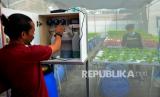 Petani muda mengontrol dosis nutrisi untuk sayuran yang ditanam dalam rumah kasa (screen house) di Makassar, Sulawesi Selatan, Senin (29/11/2021). Berbagai jenis sayuran yang ditanam dengan sistem hidroponik dalam rumah kasa tersebut sebagai inovasi pada sektor pertanian dalam mendukung ketahanan pangan. (FOTO : Antara/Abriawan Abhe)