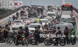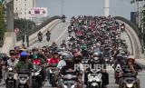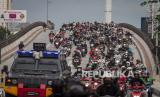 REPUBLIKA.CO.ID, SOLO -- Ribuan suporter melintas di Flyover Purwosari saat mengawal tim Persis Solo menuju Stadion Manahan di Solo, Jawa Tengah, Senin (29/11/2021). Polisi membubarkan dan melakukan penyekatan untuk menghalau suporter yang nekat konvoi mengawal tim Persis Solo menjalani pertandingan terakhir grup C melawan PSCS Cilacap.