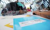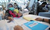 Istri pekerja yang mendapatkan Manfaat Layanan Tambahan (MLT) dari program Jaminan Hari Tua (JHT) menyelesaikan proses administrasi saat proses akad kredit massal di Serpong, Tangerang (30/11). Bank BTN berkolaborasi dengan Kementerian Ketenagakerjaan dan BP Jamsostek menggelar akad massal kredit rumah pekerja MLT program Jaminan Hari Tua guna memperluas fasilitas pembiayaan kepada pada pekerja diantaranya fasilitas kredit kepemilikan rumah dan renovasi rumah dan menargetkan realisasi kredit MLT tersebut mencapai Rp100 miliar hingga akhir tahun 2021. (FOTO : Tahta Aidilla/Republika)