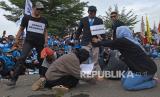 Aksi Teatrikal Demo Buruh di Kantor Gubernur Banten