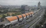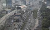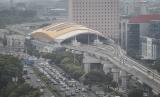 REPUBLIKA.CO.ID,JAKARTA -- Kendaraan melintas di samping proyek pembangunan LRT (Light Rail Transit) di Jakarta, Rabu (1/12/2021).