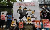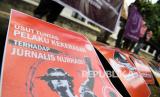 REPUBLIKA.CO.ID,JAKARTA -- Sejumlah pengurus Aliansi Jurnalis Independen (AJI) Jakarta menggelar aksi solidaritas terhadap jurnalis Nurhadi di depan Kejaksaan Agung, Jakarta, Rabu (1/12/2021).