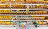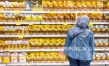 Seorang pengunjung melintasi deretan minyak goreng kemasan 2kg yang dijual di sebuah supermarket di Kota Bandung, Rabu (1/12/2021). Harga minyak goreng kemasan terus naik, hingga mencapai rata-rata Rp 36.500/ 2 liter dari harga rata-rata Rp 28.000 sebulan sebelumnya. (FOTO : Republika/Yogi Ardhi)