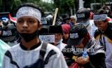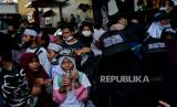 Massa aksi Reuni 212 memadati kawasan Tanah Abang, Jakarta, Kamis (2/12). Massa membubarkan diri sekitar pukul 10.00 WIB setelah berusaha melakukan aksi damai di kawasan Monumen Nasional. Berdasarkan pantauan sejumlah petugas gabungan dari TNI, Polri melakukan penjagaan ketat dibeberapa titik lokasi seperti kawasan Patung Kuda, Jalan Thamrin, Gambir, dan kawasan Istana Merdeka serta mengimbau massa aksi untuk menghindari kerumunan pada masa pandemi Covid-19. (FOTO : Republika/Thoudy Badai)